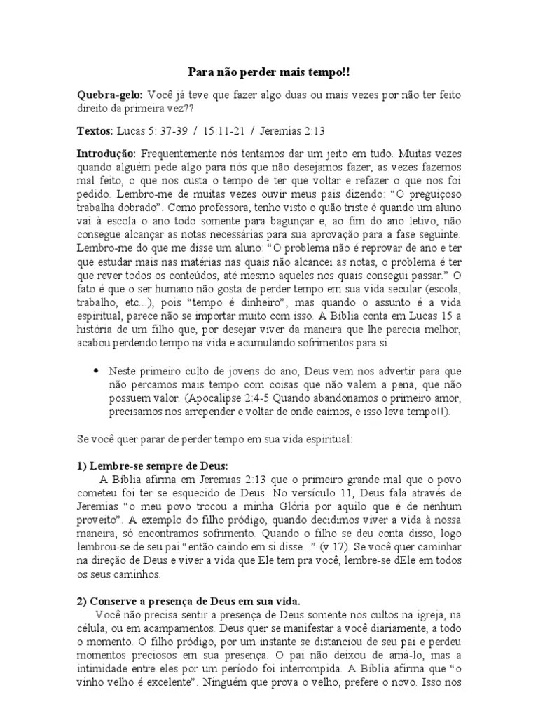 Com certeza o resultado será vidas mais comprometidas. Estas mensagens podem ser estudadas em uma série coma igreja ou grupo de estudo. Renovando a aliança com deus. Jonas e luciana (aliança com deus) esboço de sermão: Pregação sobre a aliança com deus e como devemos interceder por nossa nação, assumindo o papel de povo do senhor. Deus quando fez uma aliança com abraão ele falou assim: "e leram o livro, na lei de deus, e declarando e explicando o sentido, faziam, que lendo se entendesse." (neemias 8:8) neemias: Neemias 8 (todo o capítulo) 1) como pregar realmente... O senhor havia operado maravilhas no meio deles abrindo o mar, parando o jordão para atravessarem, parou o sol e a lua, e muitos outros milagres (v.17).venceram todos os inimigos externos, mas não venceram o pecado dentro deles (v.18).mesmo vendo os milagres, o povo continuava pecando contra …